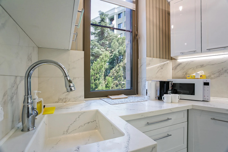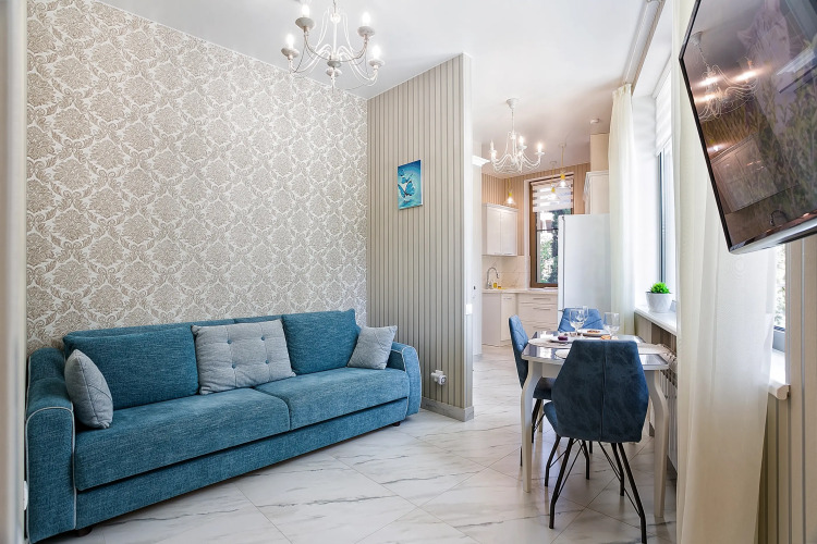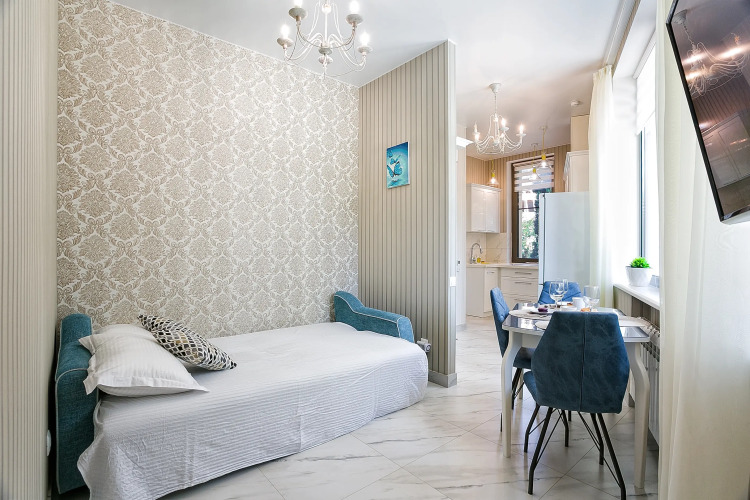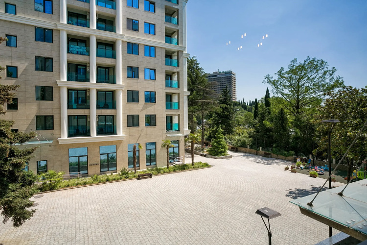 Апартаменты 1 комнатная в ЖК Скай плаза 1 у моря, адрес на карте Ялта, улица Дражинского, д. 48В, с характеристиками номеров и правом онлайн бронирования на площадке ВашОтель.RU , стоимость проживания и удобства.