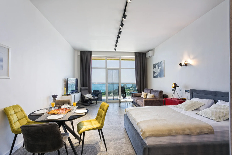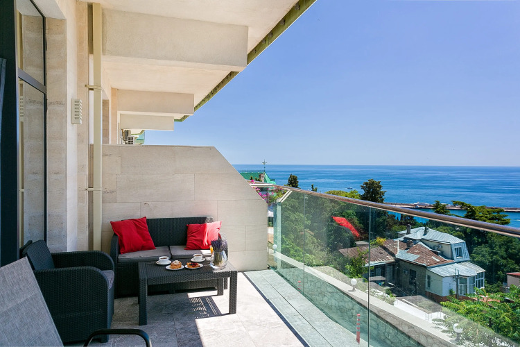 Апартаменты Аквамарин с Видом на Море, адрес на карте Ялта, улица Войкова, д.20, с описанием номеров и доступностью онлайн бронирования на ресурсе ВашОтель.RU , цены проживания и удобства.