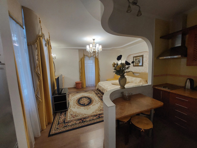 Номер уютно обставлен и оснащён необходимым, чтобы отдохнуть после долгого и насыщенного дня. Имеются телевизор. Оснащение зависит от выбранной категории номера.