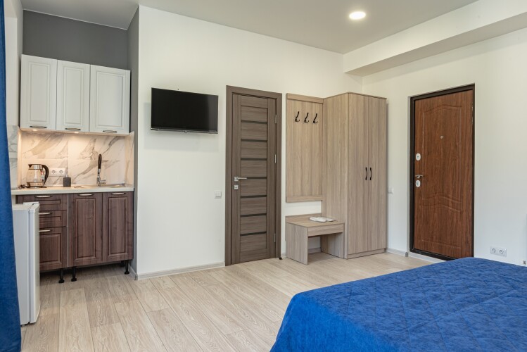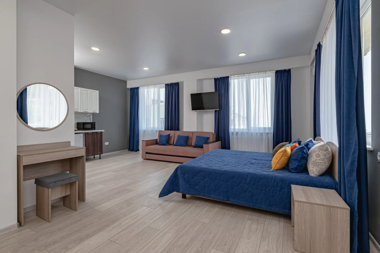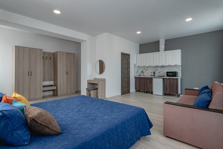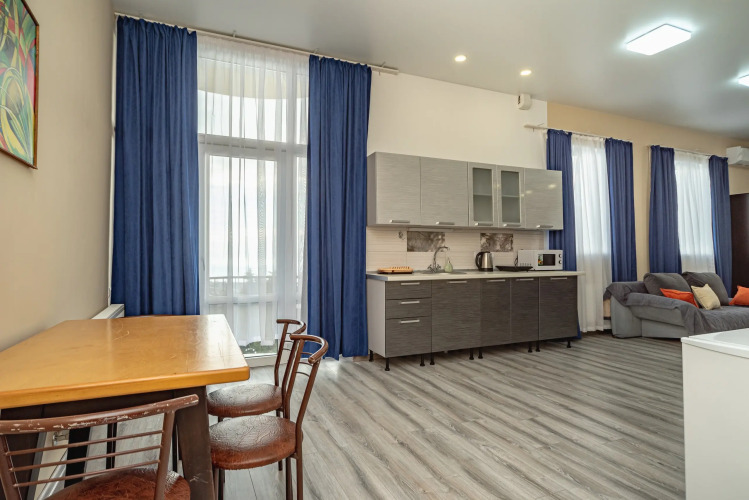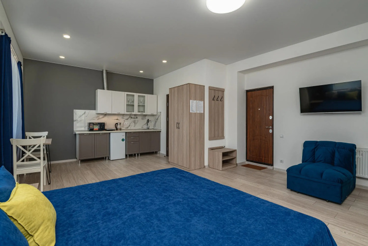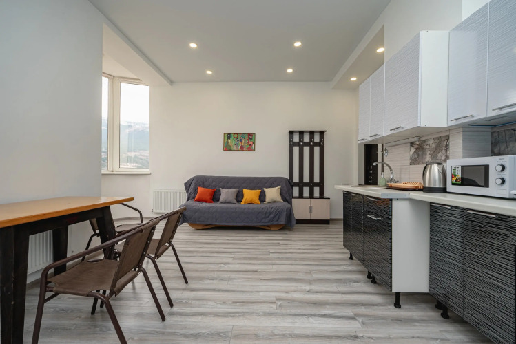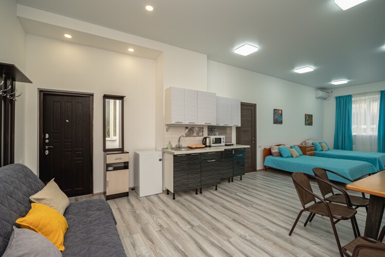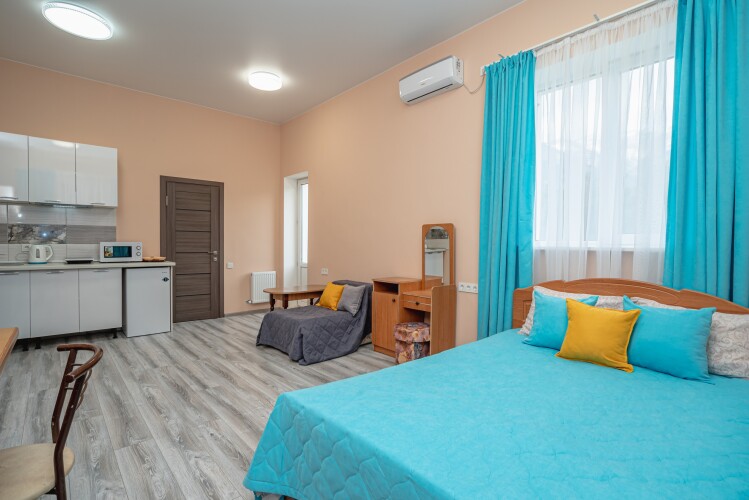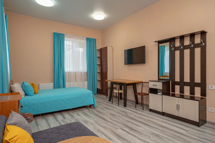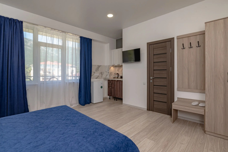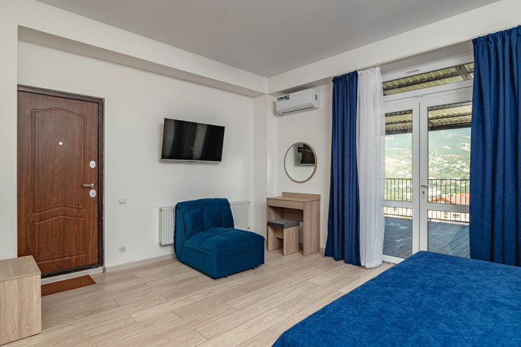 Апартаменты на ЮБШ, адрес на карте Ялта, Республика Крым, г. Ялта, ул. Южнобережное шоссе, д.49 Е, с характеристиками номеров и доступностью онлайн бронирования на сайте ВашОтель.RU , цены проживания и удобства.