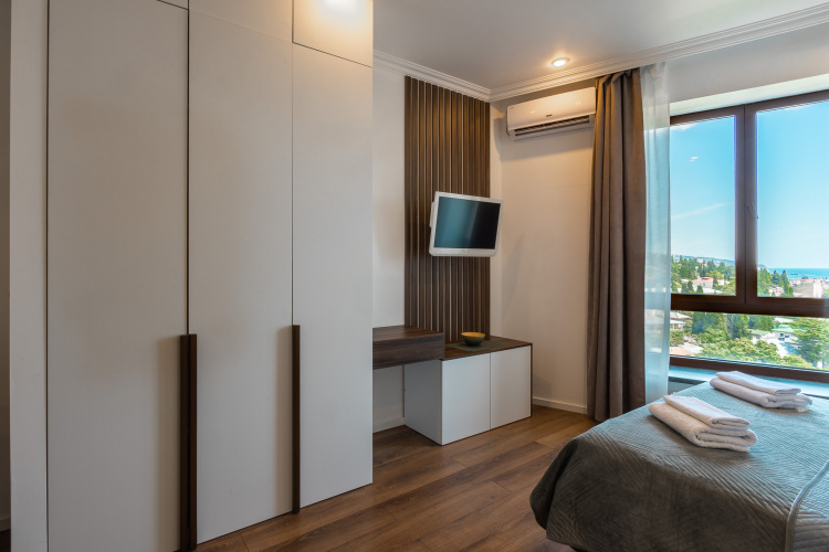 Чтобы вы могли отдохнуть после долгого дня, в номере есть телевизор и халат. Перечисленные услуги есть не во всех номерах.