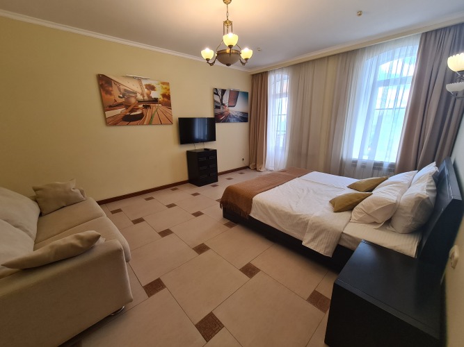 В номере вы найдёте телевизор. Оснащение зависит от выбранной категории номера.