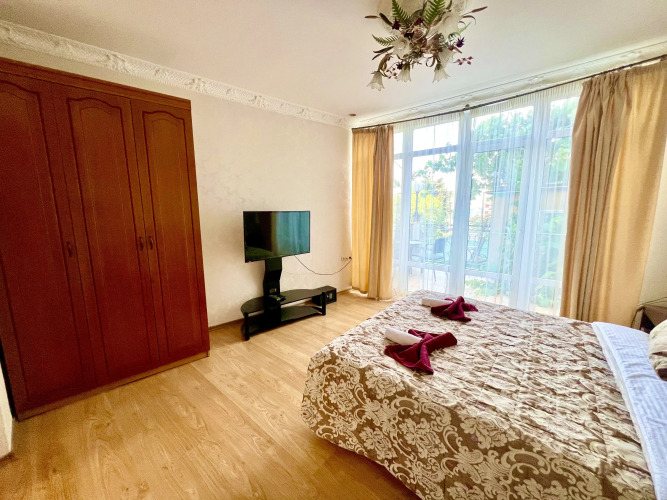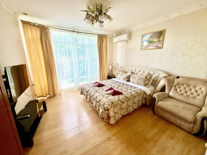 Номер уютно обставлен и оснащён необходимым, чтобы отдохнуть после долгого и насыщенного дня. Имеются телевизор. Оснащение зависит от выбранной категории номера.