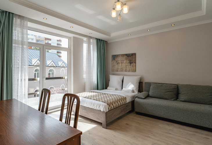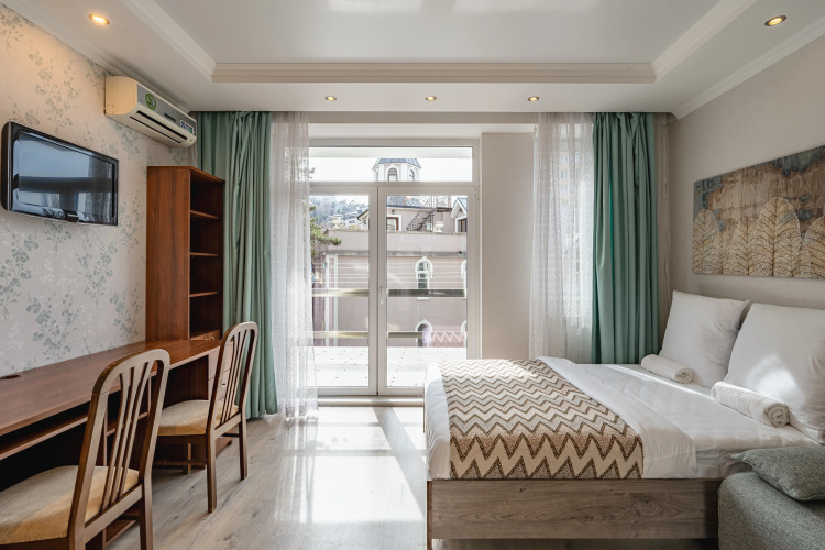 В номере гостей ждут телевизор и халат. Перечисленные услуги есть не во всех номерах.