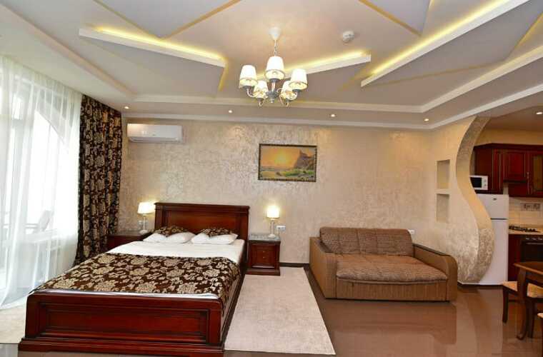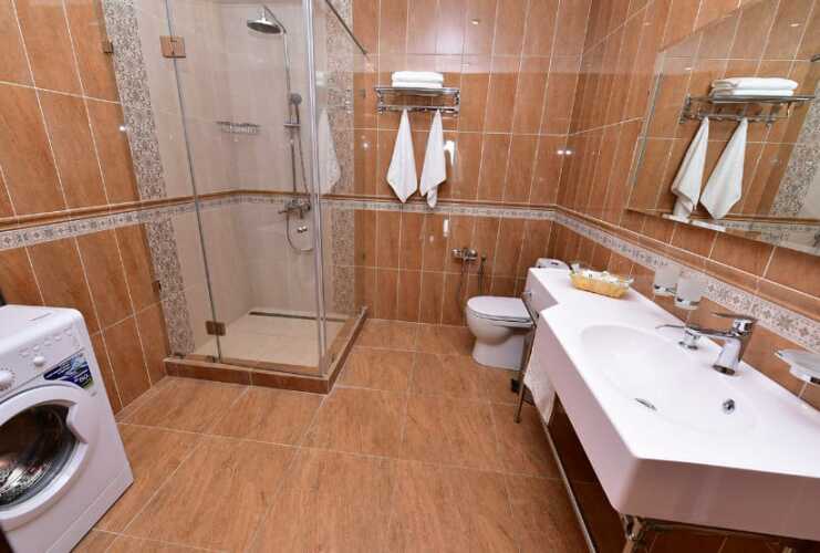 В номере вы найдёте телевизор и халат. Оснащение зависит от выбранной категории номера.