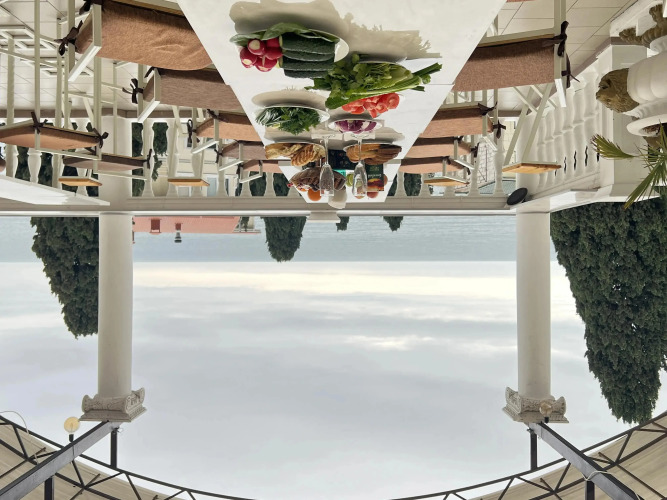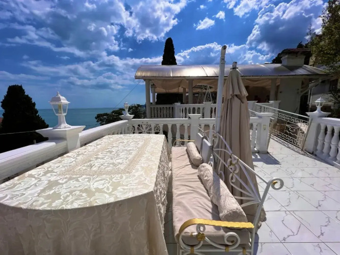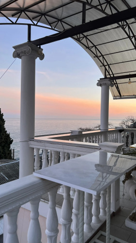 Отель имеет террассу с панорамным видом на море с 4 этажа, где имеется мангальная зона для приготовления шашлыка и барбекю. В собственном маленьком внутреннем дворе находится стойка регистрации, бассейн с живыми золотыми рыбками, водопад, место отдыха. Стойка регистрации отеля работает круглосуточно.
