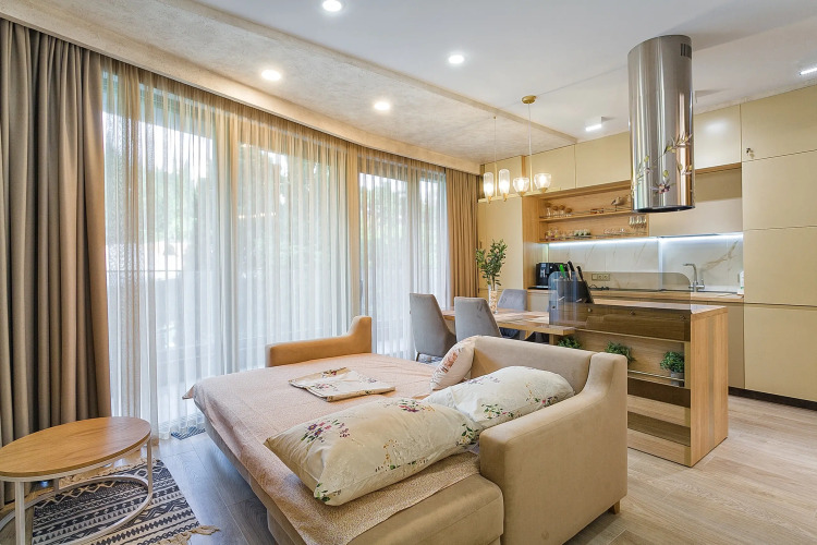 Для тех, кто не представляет отдых без водных удовольствий, есть бассейн. Удобно для гостей с ограниченными возможностями: на верхние этажи гостей поднимает лифт. Сотрудники апартаментов поддержат беседу на английском и русском.