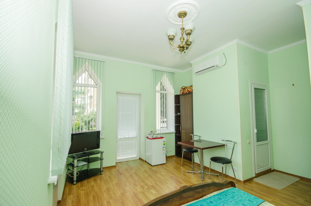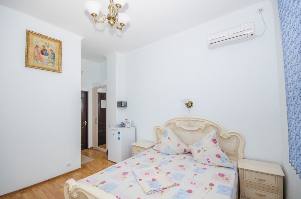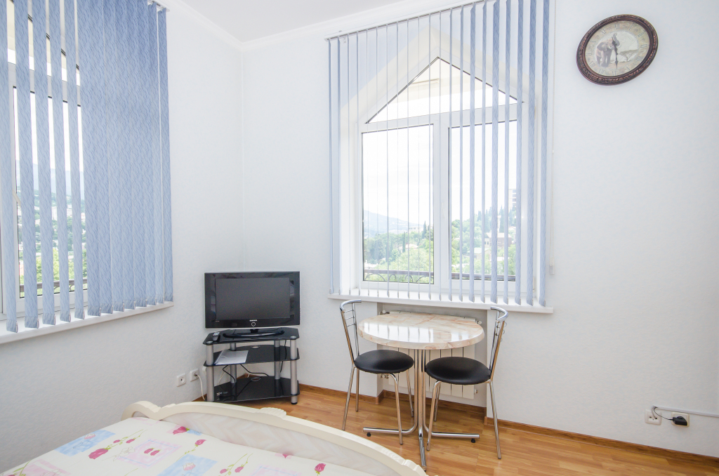 В номере вы найдёте телевизор. Оснащение зависит от выбранной категории номера.