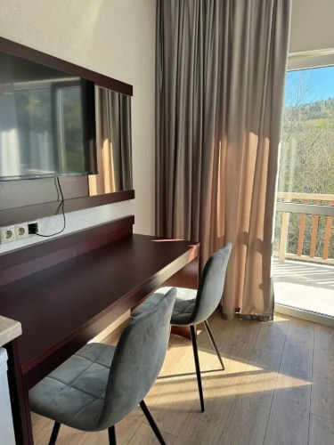2 номера расположены на 1 этаже с терассой. В распоряжении гостей в этих номерах: двуспальная кровать, диван, стулья, кухня, оснащенная посудой, чайником, микроволновой печью, холодильником, индукционной плитой
