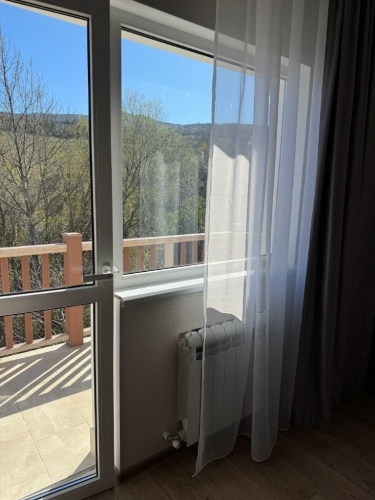 2 номера на 2 этаже с балконом оснащены: двуспальной кроватью, состоящей из двух (при необходимости их можно разделить на 2 отдельные кровати), кухней, оснащенной посудой, чайником, микроволновой печью, индукционной плитой.