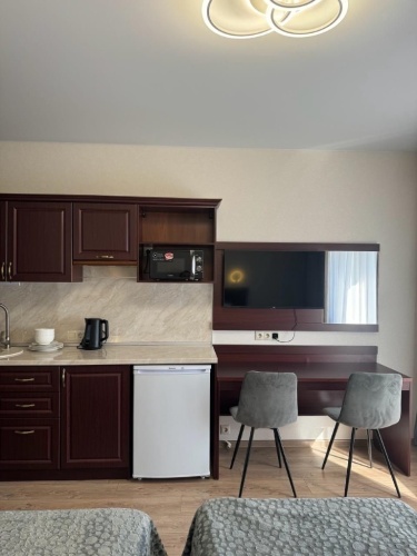 В каждом номере: душевая кабина, гигиеническая лейка, кондиционер, телевизор, Wi-Fi, фен.