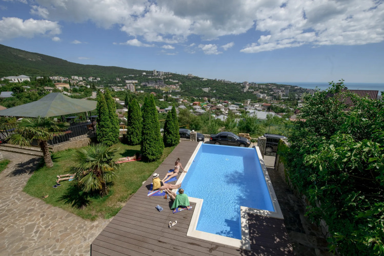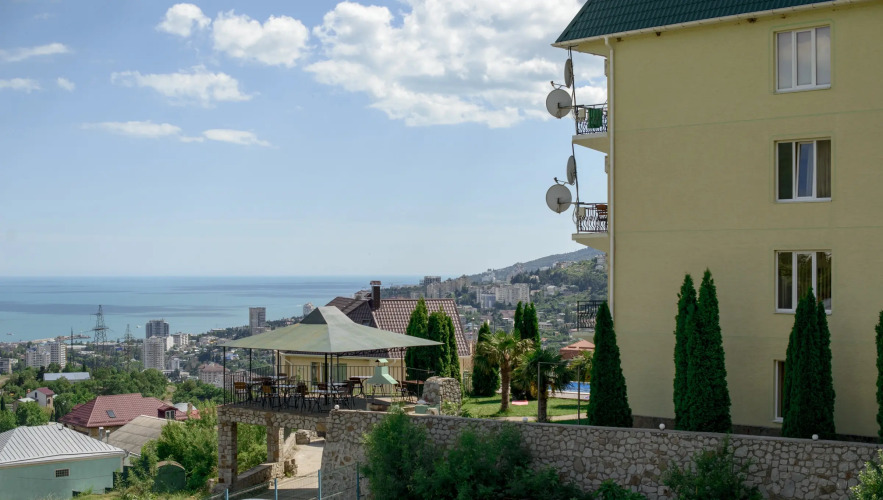 Гостевой Дом над Морем, адрес на карте Ялта, улица Адаманова 36, с описанием номеров и возможностью онлайн бронирования на ресурсе vashotel.ru , цены проживания и удобства.