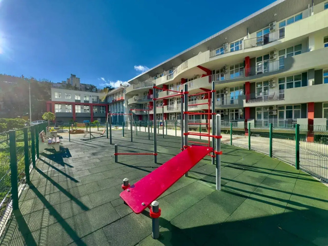 Квартира «Новая Уютная Однокомнатная в Центре Ялты у Пионерского Парка с Охраняемой Парковкой» расположена в Ялте. Эта квартира находится в центра города у кинотеатра «Спартак». С территории двора есть выход через кодовую калитку к парку, откуда можно выйти к остановке и Пушкинской аллее, ведущей к ялтинской набережной. Неподалёку: пляжи, парки, музеи, органный зал в католической церкви. В комплексе располагаются пункты выдачи маркетплейсов. В парке имеются качели, спортивные, развивающие тренажеры и детские городки.