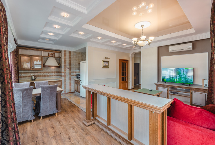 Чтобы вы могли отдохнуть после долгого дня, в номере есть телевизор. Оснащение зависит от выбранной категории номера.