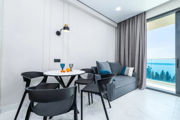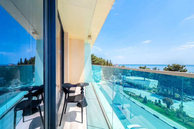 Апартаменты Скай Плаза 3 у Моря, адрес на карте Ялта, улица Дражинского, д.45А, с описанием номеров и доступностью онлайн бронирования на ресурсе ВашОтель.RU , стоимость проживания и удобства.
