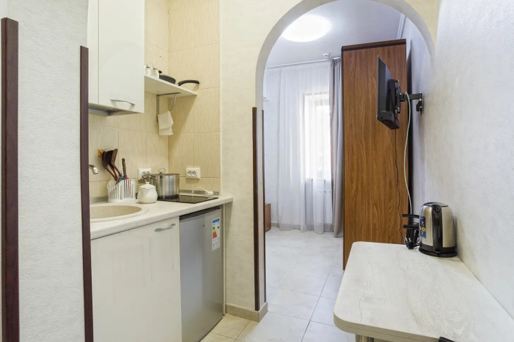 Апарт-отель располагает 15 комфортабельными номерами. В каждом номере мебель, санузел с душевой кабиной, феном и сантехникой, кондиционер, сейф, Wi Fi. Кухонный уголок оборудован холодильником, варочной поверхностью и посудой.