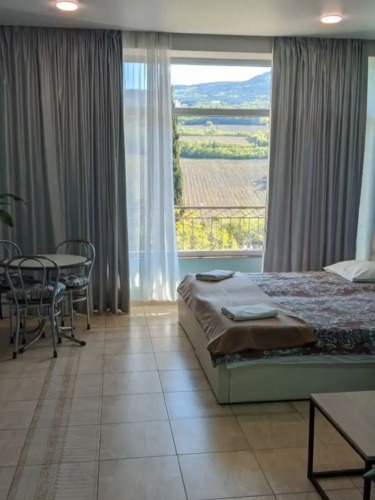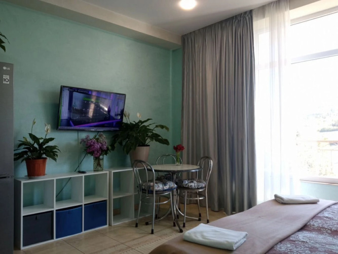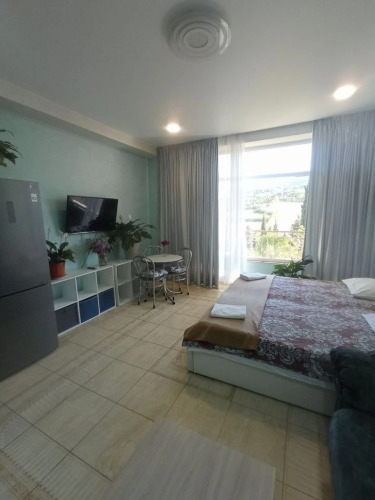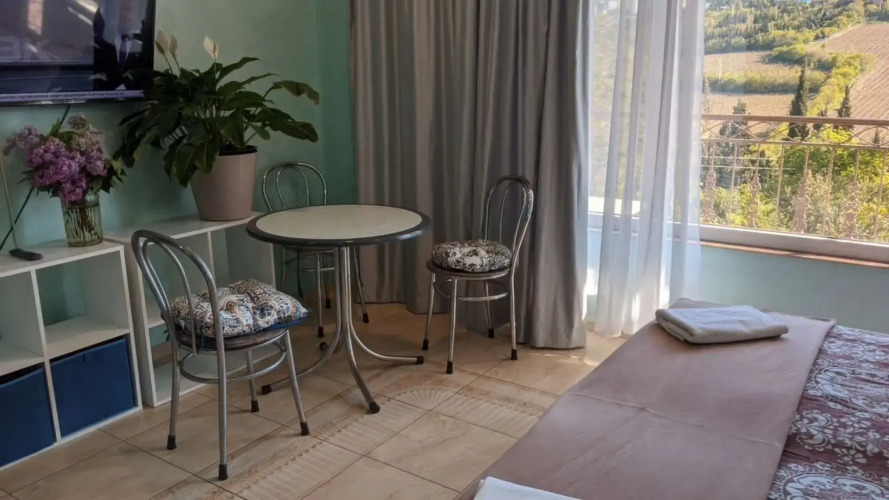 Апартаменты Студия 1 3, адрес на карте Ялта, улица Большевистская, д. 5, с описанием номеров и доступностью онлайн бронирования на площадке vashotel.ru , стоимость проживания и удобства.