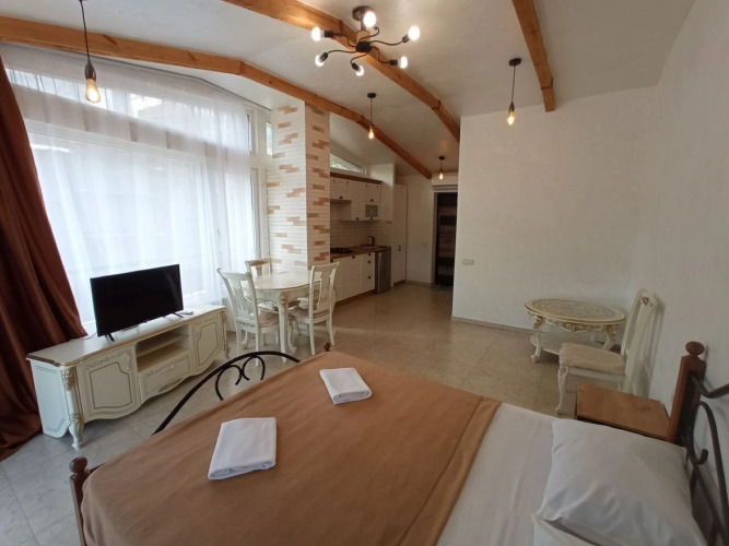 Апартаменты Студия 3 4, адрес на карте Ялта, улица Большевистская, д. 5, с характеристиками номеров и возможностью онлайн бронирования на площадке ВашОтель.RU , цены проживания и удобства.
