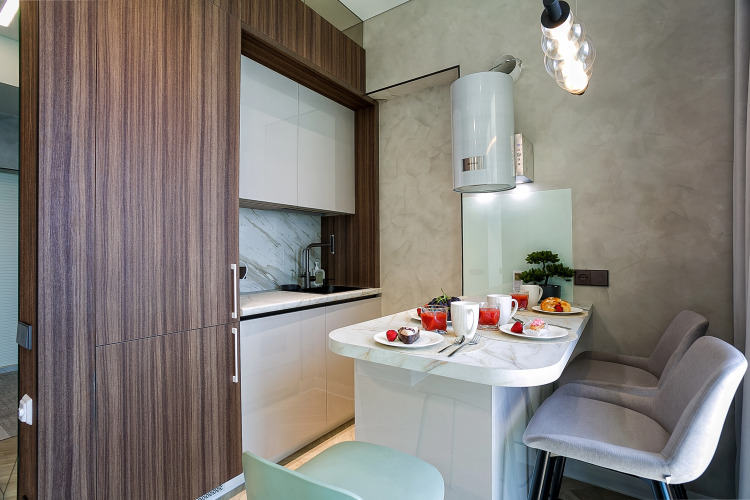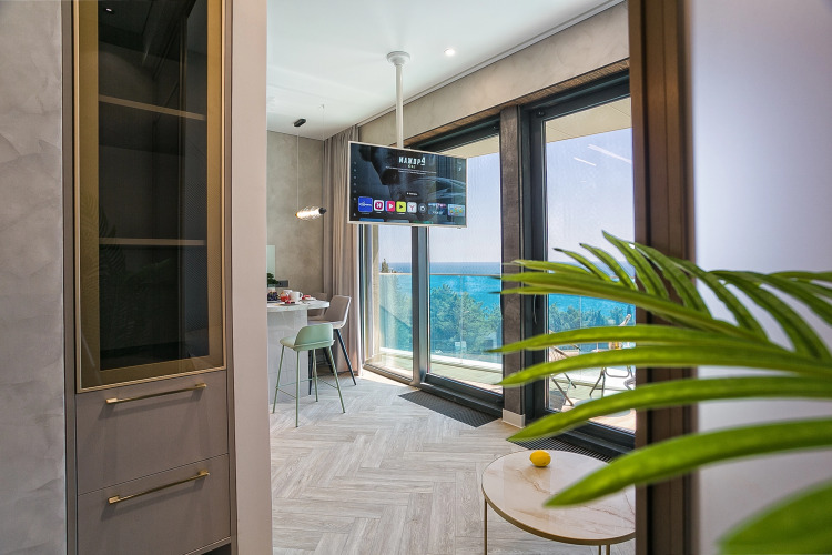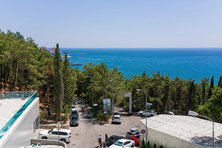 Апартаменты Студия с террасой и видом на море в Скай Плаза 3, адрес на карте Ялта, улица Дражинского, д.45А, с характеристиками номеров и возможностью онлайн бронирования на площадке vashotel.ru , цены проживания и удобства.
