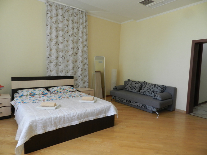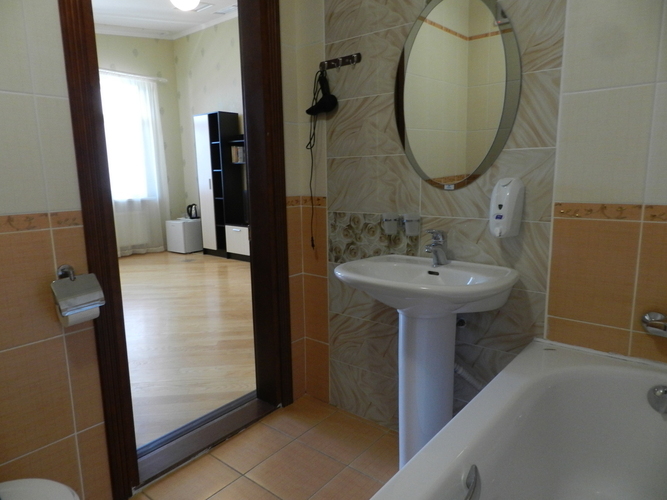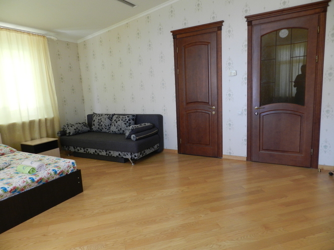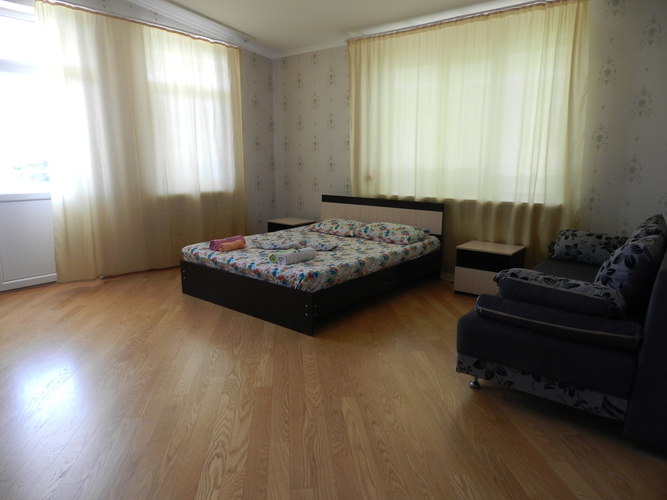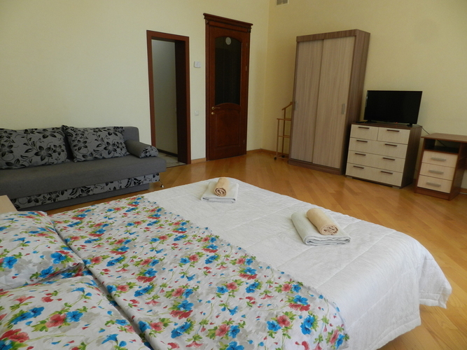 Номер с видом на море, с большим балконом, на балконе стол и 2 кресла. Спальные места: 2-х спальная кровать и 2-х спальный раскладной диван, можно поставить еще одну одноместную кровать дополнительно. В сан. узле ванна или душевая кабина, унитаз, умывальник.