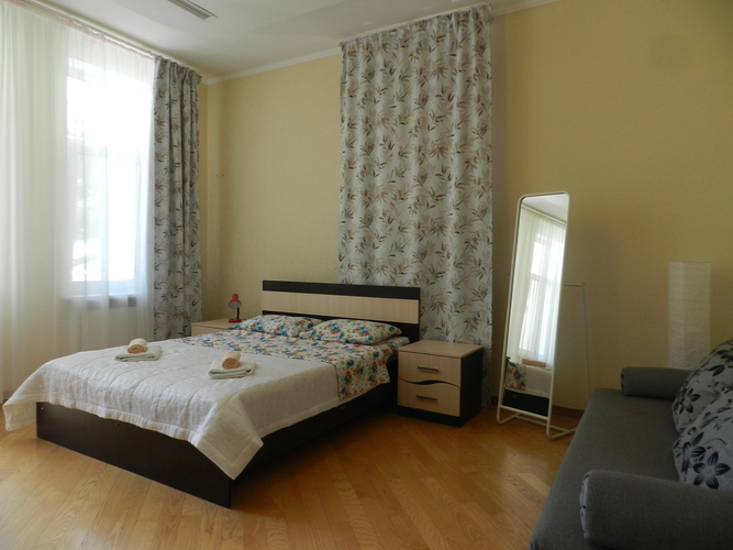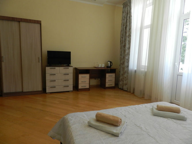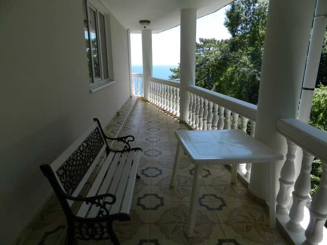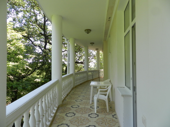 В номере есть большой балкон с видом на лес и боковым видом на море, на балконе стол и стулья, свой сан.узел и при желании можно поставить дополнительную односпальную кровать. Потолки высокие(3м.) Пол паркет или кафель.