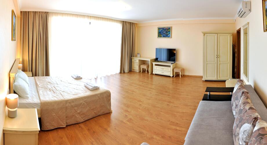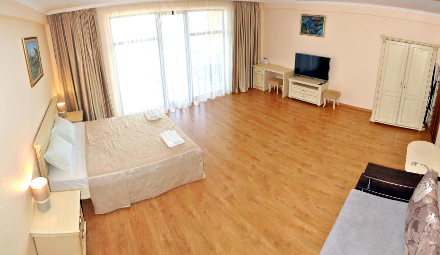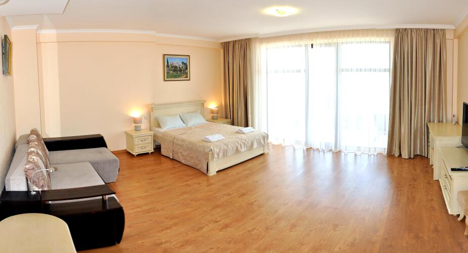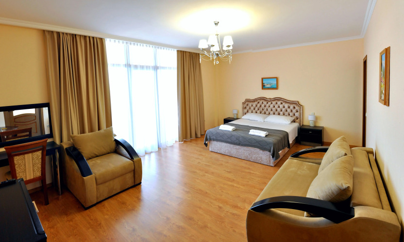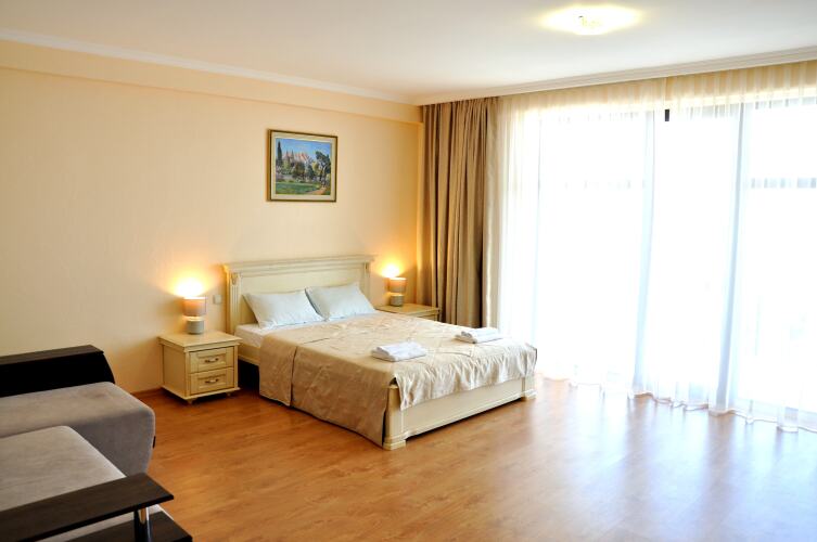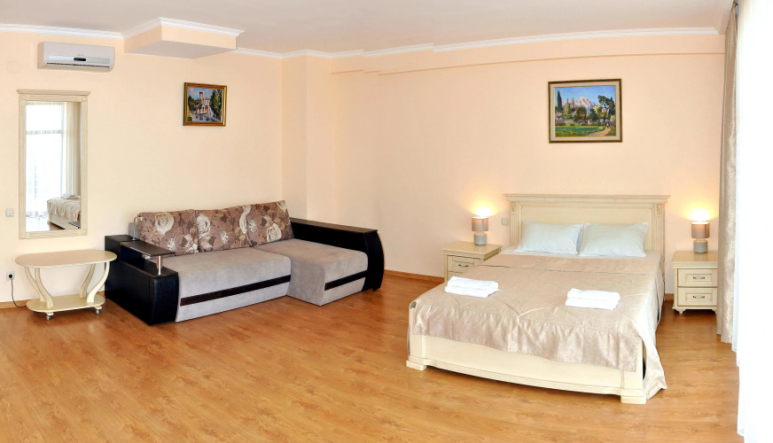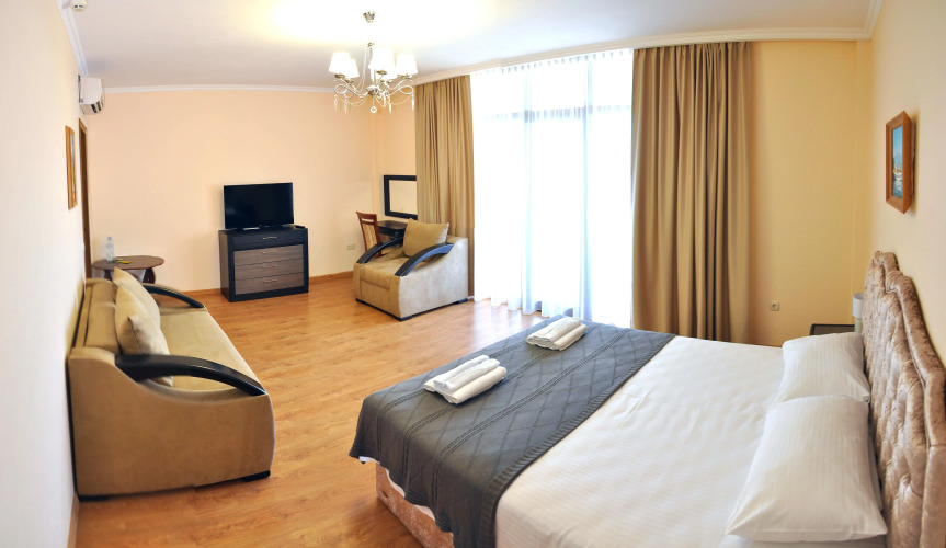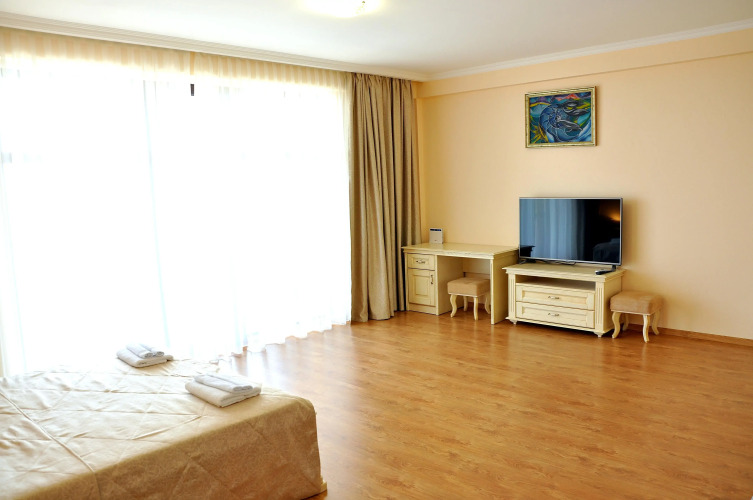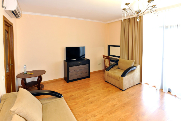 Номер уютно обставлен и оснащён необходимым, чтобы отдохнуть после долгого и насыщенного дня. Имеются телевизор. Оснащение зависит от выбранной категории номера.