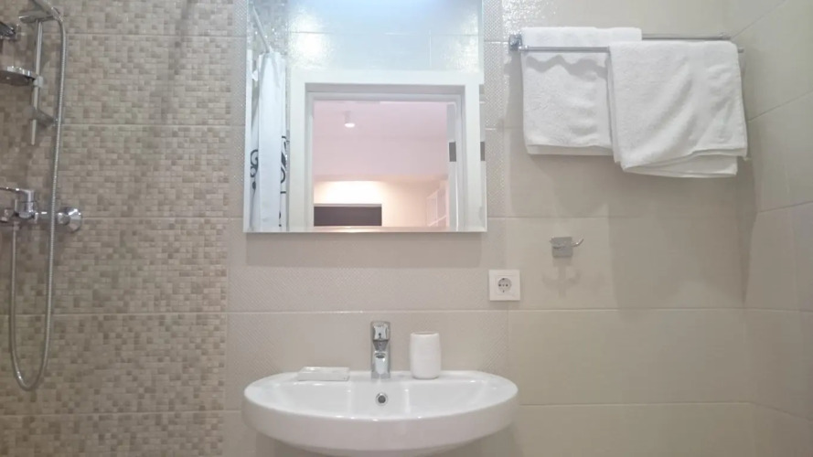 В номере вы найдёте DVD-плеер и телевизор. Оснащение зависит от выбранной категории номера.